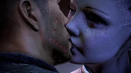 Если Шепард начинает строить отношения с Лиарой, она со временем робко признается, что никогда ни с кем раньше не занималась любовью, и находит идею немного пугающей. Однако постепенно её доверие к капитану увеличивается, она признаётся, что чувствует между ними особенную связь. Когда «Нормандия» оказывается заблокирована на Цитадели, Лиара приходит к капитану, чтобы утешить и подбодрить. Они почти разделяют поцелуй, но их прерывает Джокер.