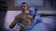 Когда «Нормандия» совершает побег и находится на пути к Илосу, Лиара является в личную каюту капитана, говоря, что она хочет провести с ним(ней) ночь, находясь в полной уверенности, что готова к близким отношениям, и боится, что может уже никогда не увидеть Шепарда снова. После ночи Лиара признаётся, что ничего такого она ещё никогда не испытывала. Азари добавляет, что для неё неважно, что произойдёт на Илосе, но она благодарна капитану за всё.