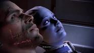 Азари даёт волю чувствам. Она плачет. Прошло уже два года после гибели капитана. Она считала его(её) мёртвым(ой), хотя только что проверила, что он(она) жив(а), и несказанно счастлива, увидев его(её) вновь. Лиара в смятении, но, взяв себя в руки, спрашивает капитана о целях его(её) визита на Иллиум.