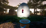 Достоверных данных о происхождении яйца недостаточно. Среди пионеров есть предположение, что арки, разбросанные по всей карте, - это останки огромного существа, а это яйцо ему принадлежит.