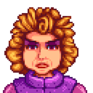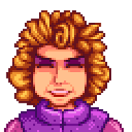 «Это знак Всевышнего... Мы обречены...» «Что ж, сдается мне, последние времена еще не настали, молодежь... Ах, блин, снова на работу ходить...» В последующие годы: «Мне кажется, эти дожди — демонстрация силы... предупреждение. Можешь считать, что это голос природы или Иобы, да что угодно... Но я вот так думаю. Я про что: лучше нам не выделываться. А не то вместо зеленого с небес польется кровавый дождь... Понимаешь, о чем я?» «Эй, слыхали про старый автобус? Ага... Я снова в седле... хе-хе. И это приятно. » Строительство рыбного пруда на ферме: «Слышала, у тебя теперь рыбный пруд... Хех, у меня в детстве такой был. В них можно вырастить любую рыбку... Но некоторые рыбы очень прихотливы!» После постройки дома для Пэм и Пенни: «Поверить не могу, что вы купили мне дом! В чём загвоздка? Извините, я не привыкла к добрым поступкам... » «Обожаю свой новый дом. Еще раз спасибо! » Если остаться анонимным: «Поверить не могу, что кто-то купил мне дом! Может, это какое-то надувательство? Извините, я не привыкла к добрым поступкам... » Реакция на праздники: «Хе-хе... Я кое-что хорошенькое подмешала в пунш. Тс-с... Это я тебе по секрету говорю, молодежь.» «Эй... Если задумал меня яйцами накормить, то будь добр подать к ним острого соуса, молодежь!» «Эй, молодежь... У тебя что, выходной? Хорошо же иногда кайфовать, да? Ага... Даже старушке Пэм иногда нужно понежиться на солнышке! Просто разбуди меня до того, как я поджарюсь... Хе-хе.» «Эх, хорошо живем... Да, молодежь? Сладкое вино, ручеек журчит, воздух теплый... Я уже говорила про вино?» «Красное желе на ветру как будто тоже танцует! Ха... Или я просто выпила вина больше, чем нужно.» «Хе-хе... Шведский стол — одно из преимуществ жизни в нашем городе. Наслаждайся, молодежь!» «*хлюп* О да! Еще хочу!» «Ты только не говори Гасу, но я разочарована, что сегодня мы без шведского стола.» «Эй, молодежь. У тебя же ферма. Так скажи мне вот что... из этих штук можно делать джем? Тогда бы я на намазке на тост кучу денег сэкономила!» «Торопись, молодежь... А не то старушка Пэм сейчас всю самую большую рыбу выловит! Хе-хе.» «Какой славный день, молодежь!» «Я приду на любой праздник, где можно поесть задарма! Но в лабиринт меня не заманишь, нет.» «Еще одну бутылочку тыквенного эля мне!... *икает*» «Я хочу победить в соревновании! Правда, Вилли обойти будет не так-то просто... Он же день и ночь этим занимается.» «В том году я проиграла, потому что выбрала неудачное место. У меня предчувствие, что в этом году все будет лучше.Не думаю, что это зависит от места. — Хах. Уж кто бы говорил. Я тебе докажу.Я все равно выиграю. — ...Ну, удачи.— И тебе, молодежь.'» Если персонаж выиграл состязание: «Ладно-ладно... Победа в рыбном состязании твоя по праву. Хм-м... Наверное, не стоило использовать вымоченный в пиве гриб в качестве наживки... » «Я-то уж кальмара не поймаю, но ничего страшного. Я тебя отсюда подбодрю, молодежь.» «Пф-ф... Я все еще недовольна, что не выиграла соревнование по подледному лову.» «В этот мороз я выживаю только благодаря глинтвейну! » |