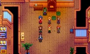 Событие запустится, только если вы подарили букеты всем неженатым парням, достигли с каждым из них уровня дружбы в 10 сердец и видели события на максимальном уровне дружбы с каждым, но ещё не вступили в брак с кем-либо. Зайдите вечером в Салун.