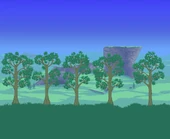 Мира в шаре. Задний фон можно поменять при помощи монолитов. Задний фон никак не влияет на сами биомы, за исключением Освящения, где задник задаёт вид деревьев. Задники можно выключить в настройках, но cущности окружения по прежнему будут появляться.