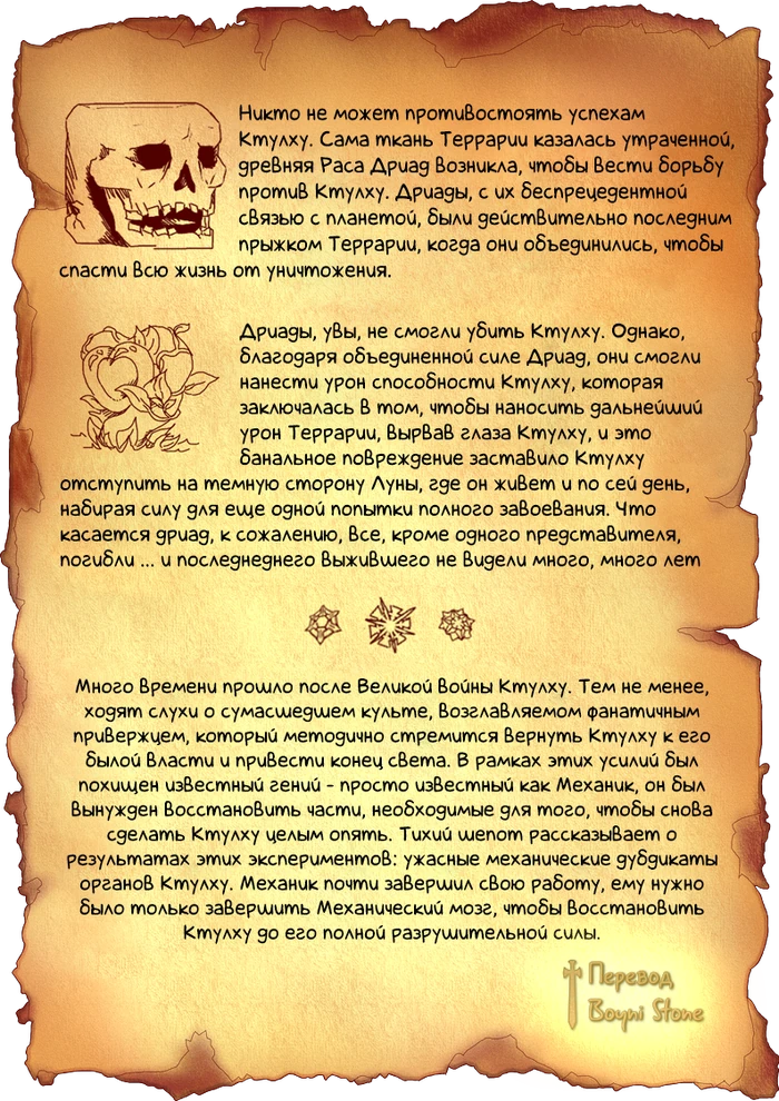 В статьи использованы материалы сайта terraria-game.fandom.com, в соответствии с условиями лицензии CC-BY-SA.