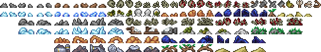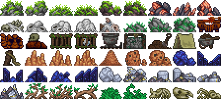 В большей части Биомов можно встретить объекты окружений, которые случайно появляются с момента создания мира. Эти натурально размещённые объекты окружения могут быть сломаны Киркой, но многие из них не дадут никакого эффекта и с них не выпадут вещи. Их основная функция — это визуальное окружение и невозможность быть собранными, однако их можно размещать при помощи булыжникатора и соответствующих блоков.