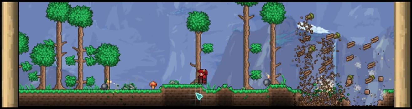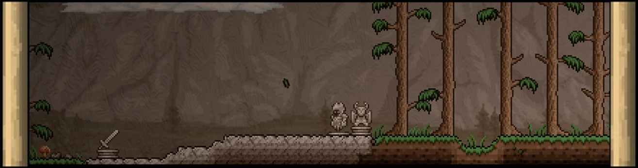 Игрок спавнится в случайном месте мира. Точка спавна никогда не пересекается с Данжем Скелетрона и выбирается по логике, похожей на Зелье телепортации. В пещерах вокруг спавна генерируются факелы.