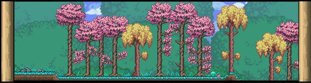 В лесных биомах на поверхности добавляется много Огромных деревьев (те самые полые, со входом внутрь и корневыми тоннелями вниз). Корни уходят очень глубоко, до слоя пещер. Некоторые деревья (уникальные для сида) особо высокие и могут достигать слоя Космоса.